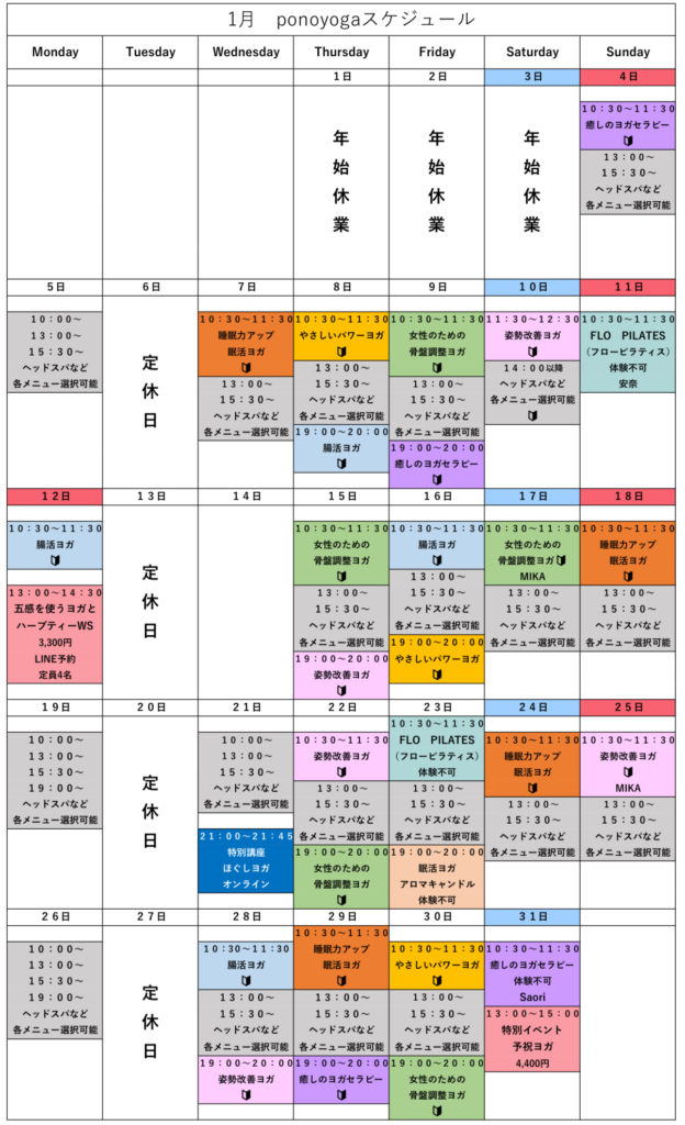 1月スケジュール|名古屋|昭和区|桜山|ヨガ体験