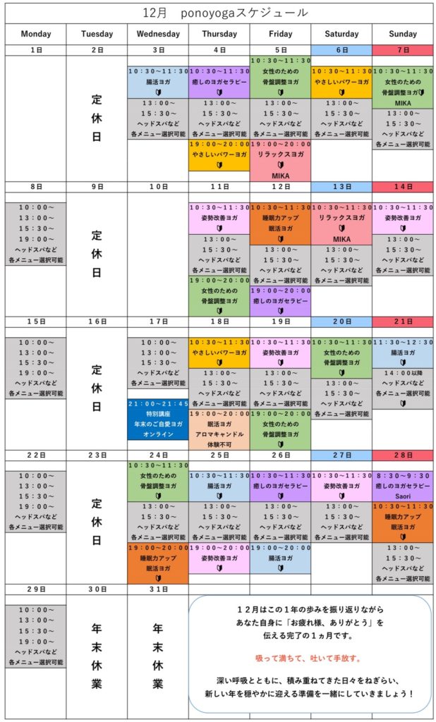 講座内容はInstagramでご確認ください。@ponoyoga-nagoya